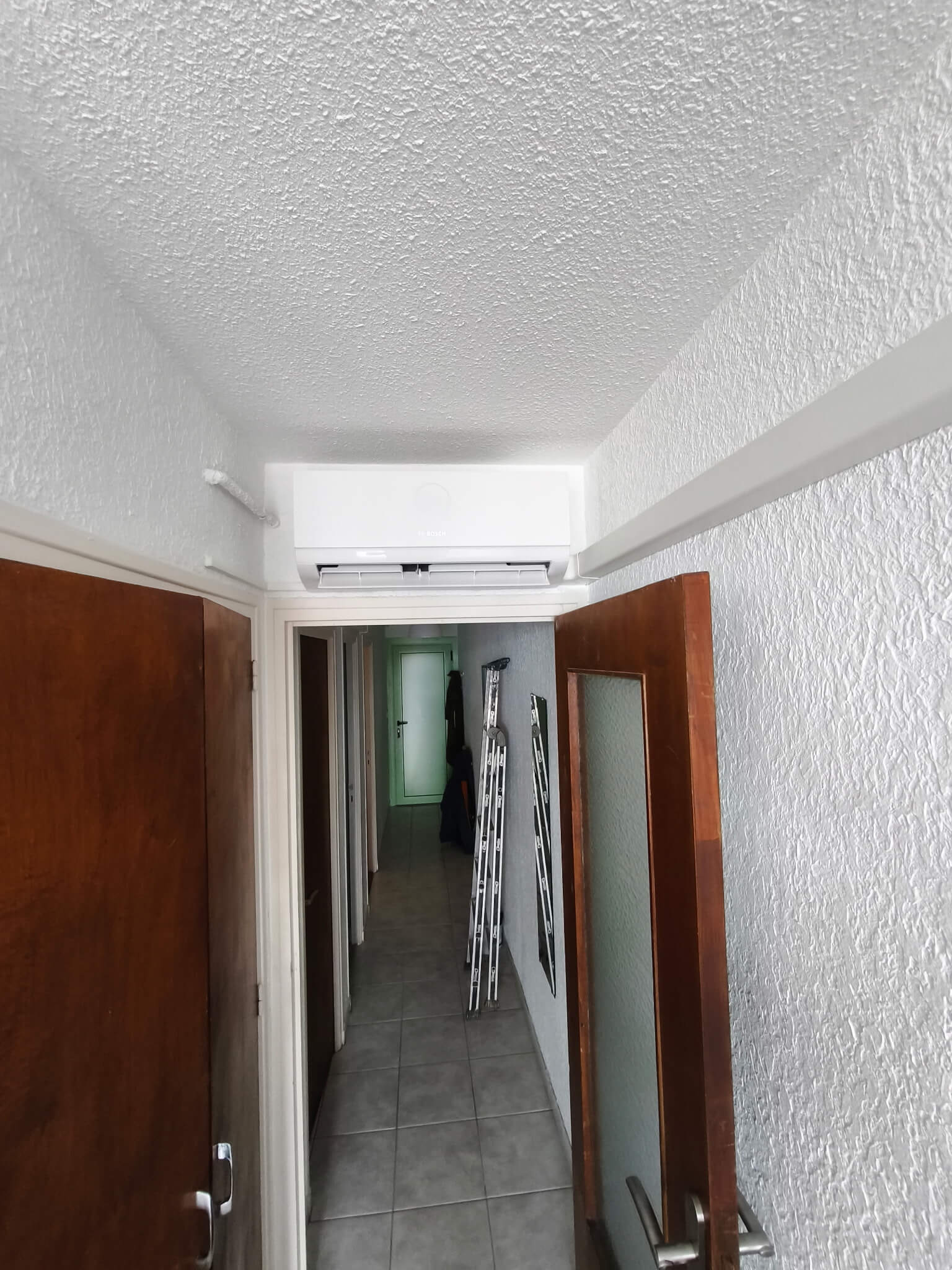 Unité intérieure de climatisation BOSCH installée dans un couloir d’appartement à Banyuls-sur-Mer
